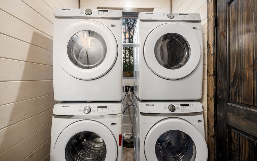 And for your convenience, our cabin has 2 sets of in-house washer and dryer. There is also a half bath in this area.